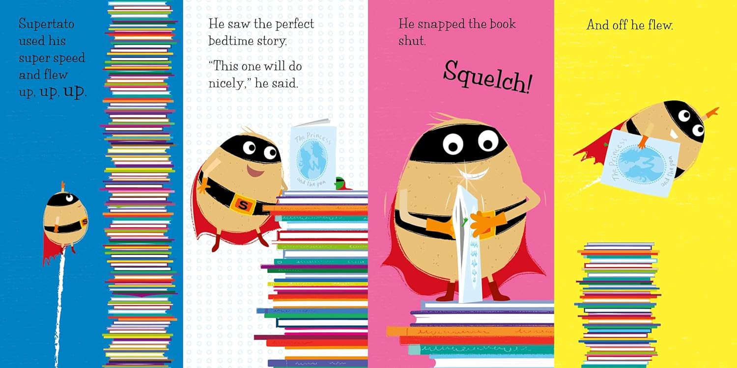 Discover Supertato, the favourite supermarket hero, ready to rescue the day when trouble strikes! Dive into two delightful mini tales where Supertato and the veggies show The Evil Pea that reading isn’t rubbish at all in Books Are Rubbish! Then, join them as they turn bedtime around with the perfect tale in Hap-Pea Ever After.