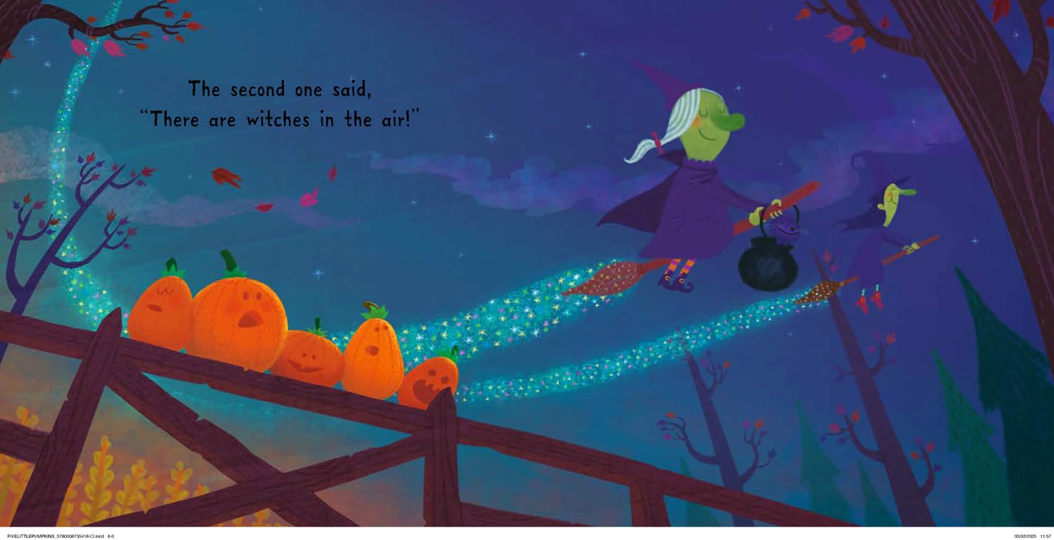 Get ready for a spooky laugh with this charming rhyming story! Five little pumpkins rest atop a gate. The first one says, "Oh my, it’s getting late!" The second warns, "Beware, witches are near!" The third chimes in, "Good friends, take care!" As night falls, these five pumpkins are joined by witches, spiders, bats, frogs, and ghosts, all set to stir up some Halloween fun. A delightful and playful treat for the season!