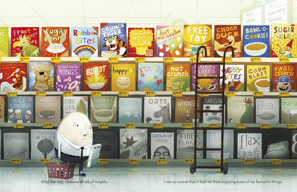 A comedic twist on the classic Humpty Dumpty tale by award-winning author and illustrator Dan Santat. After his infamous fall, Humpty Dumpty struggles with his fear of heights and daily tasks like climbing into bed or reaching for cereal. However, with the help of his love for bird-watching, he embarks on a journey to overcome his fears and discovers something extraordinary.
